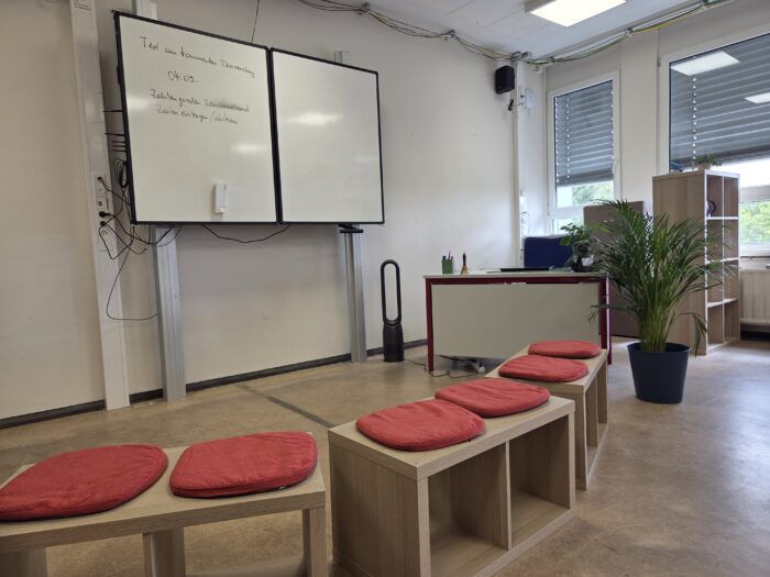 Besonders wichtig war uns die Lernumgebung: „Der Raum ist der dritte Pädagoge“ – nach diesem Motto haben wir im dritten Obergeschoss zwei moderne, miteinander verbundene Klassenräume und einen zusätzlichen Stillarbeitsraum geschaffen. Mit viel Einsatz wurden Möbel aufgebaut, Regale gestrichen und Materialien vorbereitet. Heute zählen diese Räume zu den schönsten im Haus und bieten Platz für konzentriertes, eigenständiges Arbeiten.